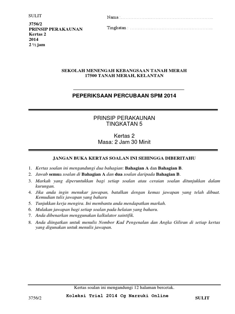 Contoh Soalan Spm Prinsip Perakaunan Kertas 2 Contoh 37 Otosection